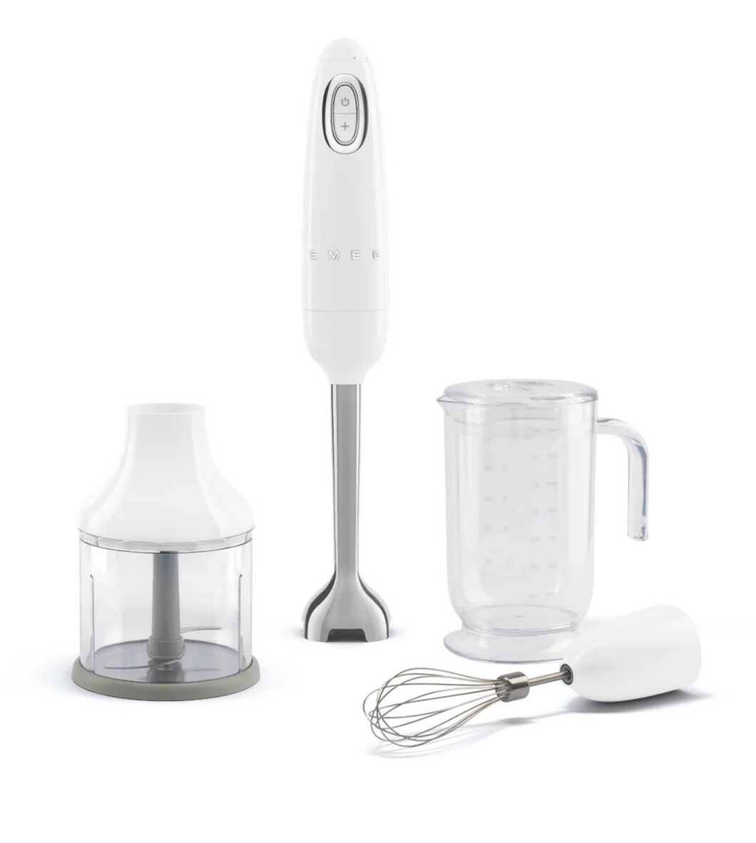 Combining midcentury style with modern features, this handheld immersion blender has five variable speeds and a turbo boost function for precise, adjustable control. It also boasts a powerful 350W motor that blends, purees and mixes ingredients in seconds for thick milk shakes, fresh mayonnaise, chunky guacamole and ultrasmooth soup. We paired the multitasking machine with a beaker, chopper bowl and wire whisk to help expand your culinary repertoire. The blender and accessories are made by SMEG, an Italian-based company known for retro-inspired appliances created in collaboration with some of the world's top architects.