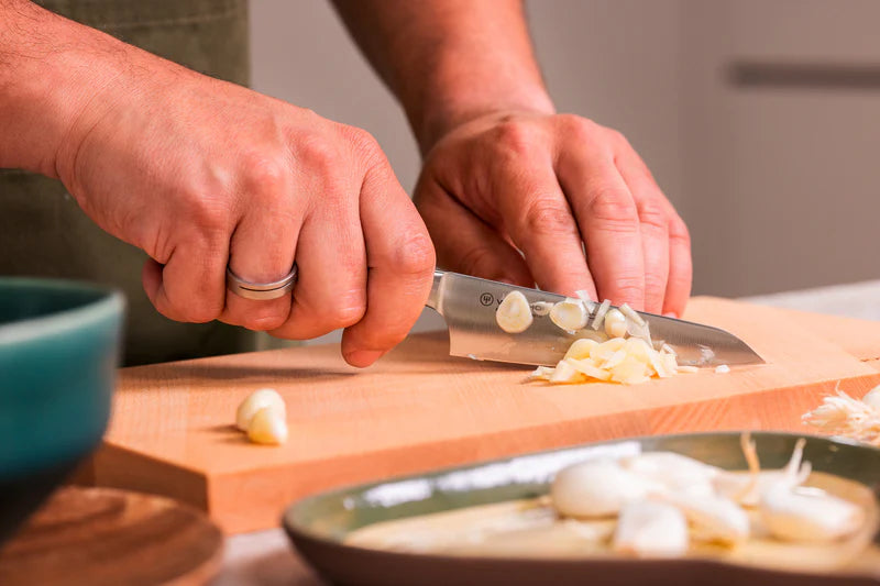 The WÜSTHOF Classic Asian Utility Knife features a uniquely curved straight edge blade, which allows it to be used as both a mini chef's knife and as a paring knife. The knife is perfectly designed for both low rock cuts that require moderate heft and precise balance, and closer hand work that demands a razor-sharp edge and exceptional agility. The ideal size and shape for countless food prep tasks, the Asian Utility Knife performs effortlessly when cutting, slicing, or dicing a variety of ingredients, including small- and medium-sized fruits, vegetables, and cheeses. It can also be used to trim meats and poultry.