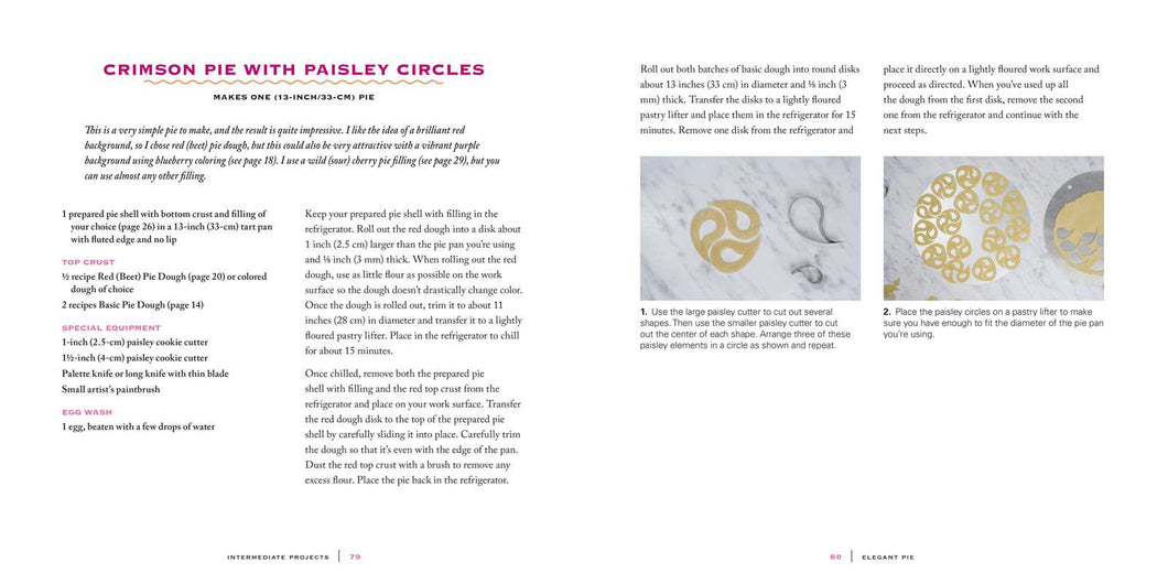 Pies can be as stunningly attractive as the most decorative cakes with the use of some basic techniques and the appropriate care when working with pie dough. The recipes and techniques in this book give any home baker the tools to create breathtaking works of pie art. From preparation of the dough to the last moments of baking, all methods are clearly presented using step-by-step photographs. A flat surface, rolling pin, sharp knife, and cookie cutters of different sizes and shapes make embellishing an ordinary pie crust easy.