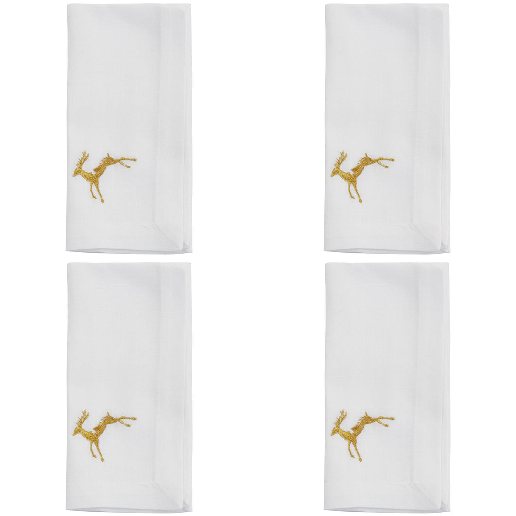Sold Per 4 Pieces; Priced Per Piece - Elevate your tabletop with a dash of subtle elegance and bring stylish notes to each and every place setting with this gorgeous set of Embroidered Reindeer Table Napkins. The golden embroidery enhances your décor while adding texture to the table as well. The white background helps the embroidery stand out, without overshadowing the entire ensemble.