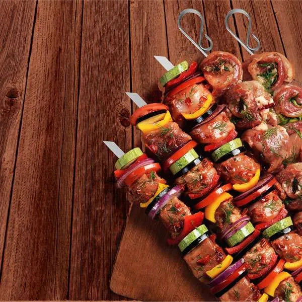 Support thick, larger kebabs, chunks of beef or pork, fish, even vegetables, like tomato and mushrooms won’t slip or spin.