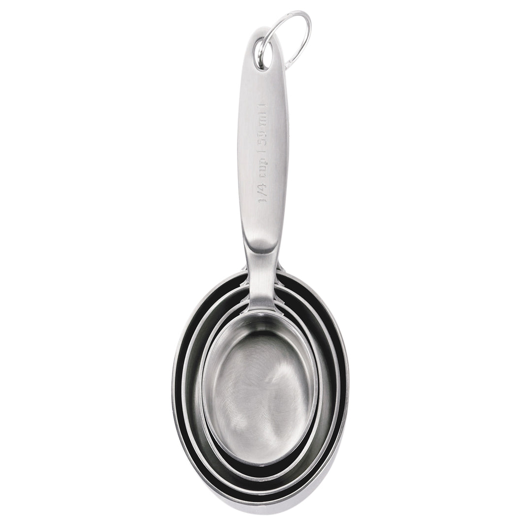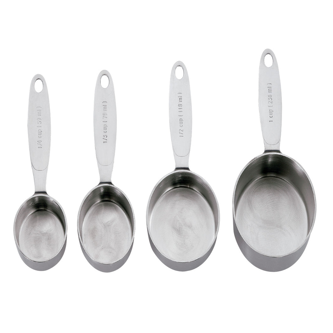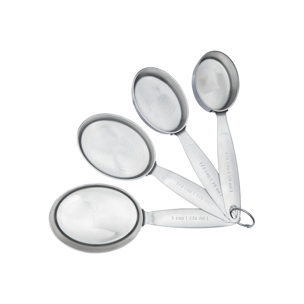 See why our measuring cups are highly rated - as they are made to measure! Their unique oval shape allows for easy scooping, and fitting into narrow jars. You can feel the durability! Made from high quality stainless steel. They fit together neatly and are held together with a simple storage clip.