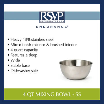 - Bowl measures 10 inches in diameter and 4.5 inches tall, with a 4 quart capacity.