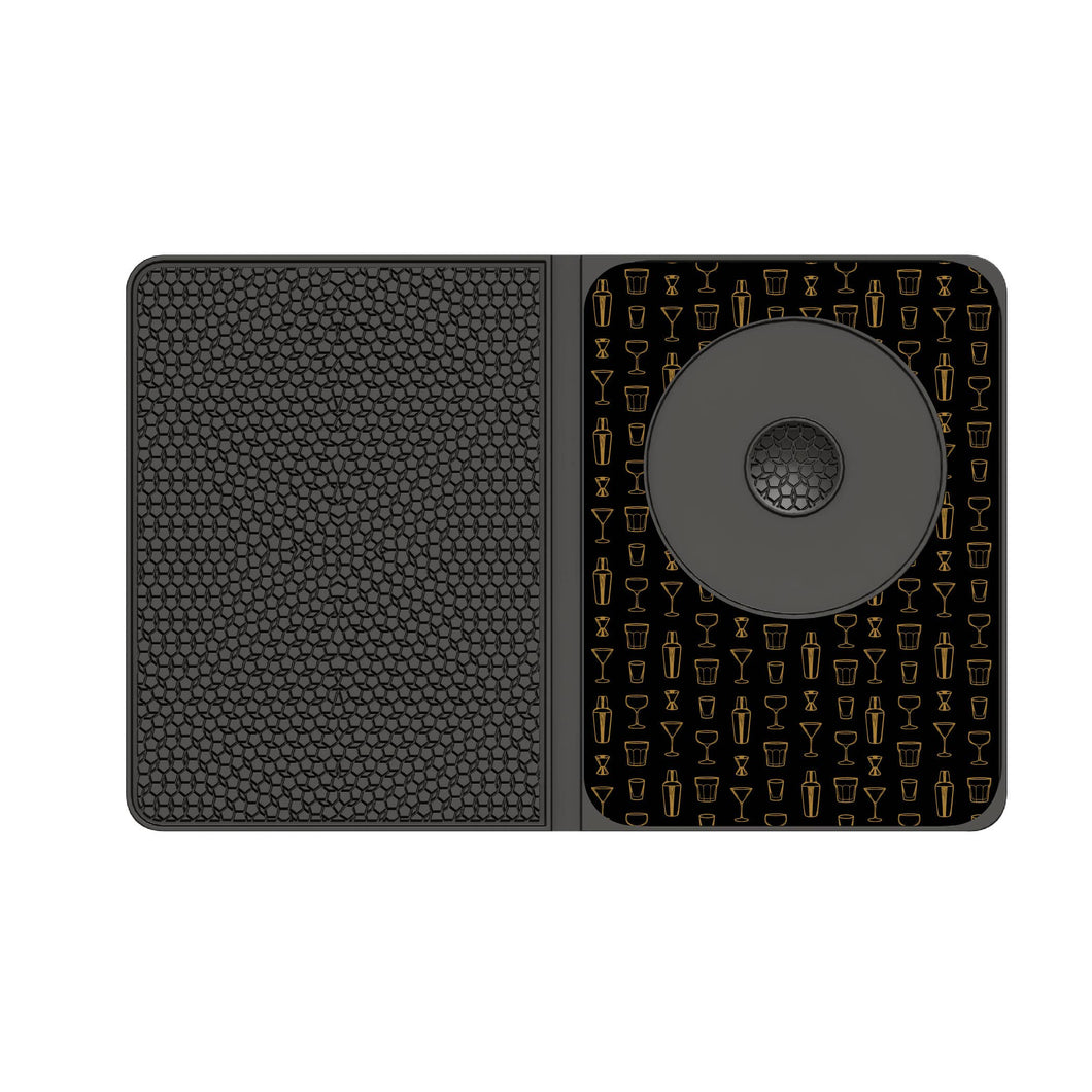 Protect counter by pouring drinks and drying glasses on the unique textured TPE Bar Mat. Cut and prep garnishes on the removable cutting mat. Rim glasses with salt, sugar and more in the 6" diameter built-in rimmer. Folds flat for easy storage.