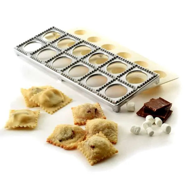 4. Seal by running a rolling pin over the top. Roll across the dough covered frame, gently at first and then increase pressure until the zig-zag edges of the frame are visible through the pasta.