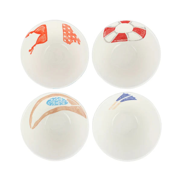 Pure fun, the Riviera Assorted Cereal Bowls celebrate la dolce vita. With swimsuits and snorkels, flipflops and sea life, these handpainted designs capture the joy and warmth of an Italian beach, and they make all of your gatherings feel like a long-awaited and well-deserved vacation.