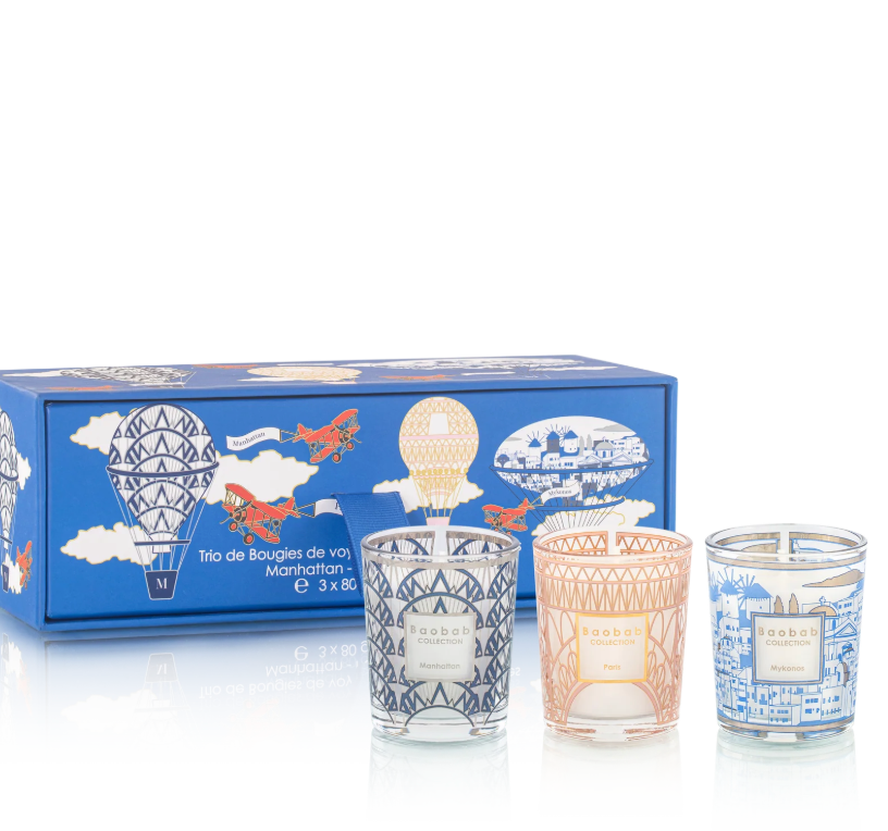 Manhattan: Its scent of cypress, lavender and papyrus will transport you to the corner of Madison Avenue and 82nd Street, where springtime fragrances escape Central Park. Paris: Its fragrance in a blend of lime blossom, wisteria and mimosa will transport you to the romanticism of the city. Mykonos: Its scent of basil, jasmine and patchouli will carry you away to the scents of a sun-drenched summer.