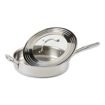 Durable stainless steel lid with tempered glass insert that fits multiple sizes of frying, stockpots, and sauce pans.