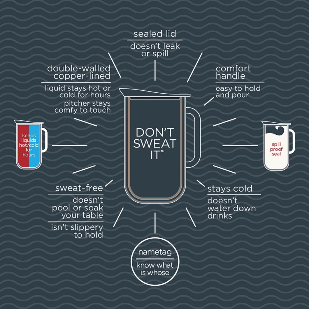 That same double-walled technology is also why the pitcher won't sweat and become slippery to carry or leave puddles on the table.